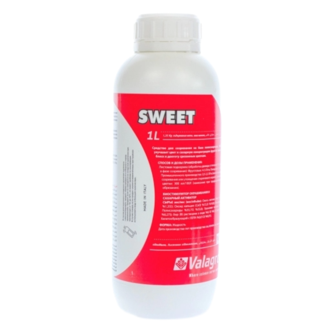 При применении в течение последних стадий роста растения, биостимулятор Sweet улучшает окраску и яркость бутона, увеличивает период сохранности после срезки, повышает лежкость плодов и концентрацию в них сахаров, улучшает окраску и укрепляет ткань плодов, позволяет получить более ранний урожай и сократить количество незрелых плодов.