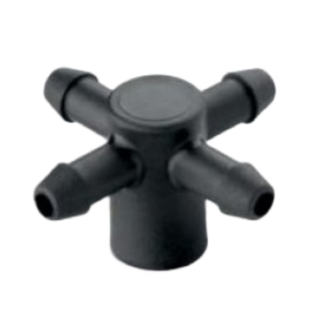Разветвитель для капельниц на 4 выхода предназначен для разделения потока воды или питательного раствора от одной капельницы на четыре отдельных канала, что позволяет организовать одновременный капельный полив четырех растений.