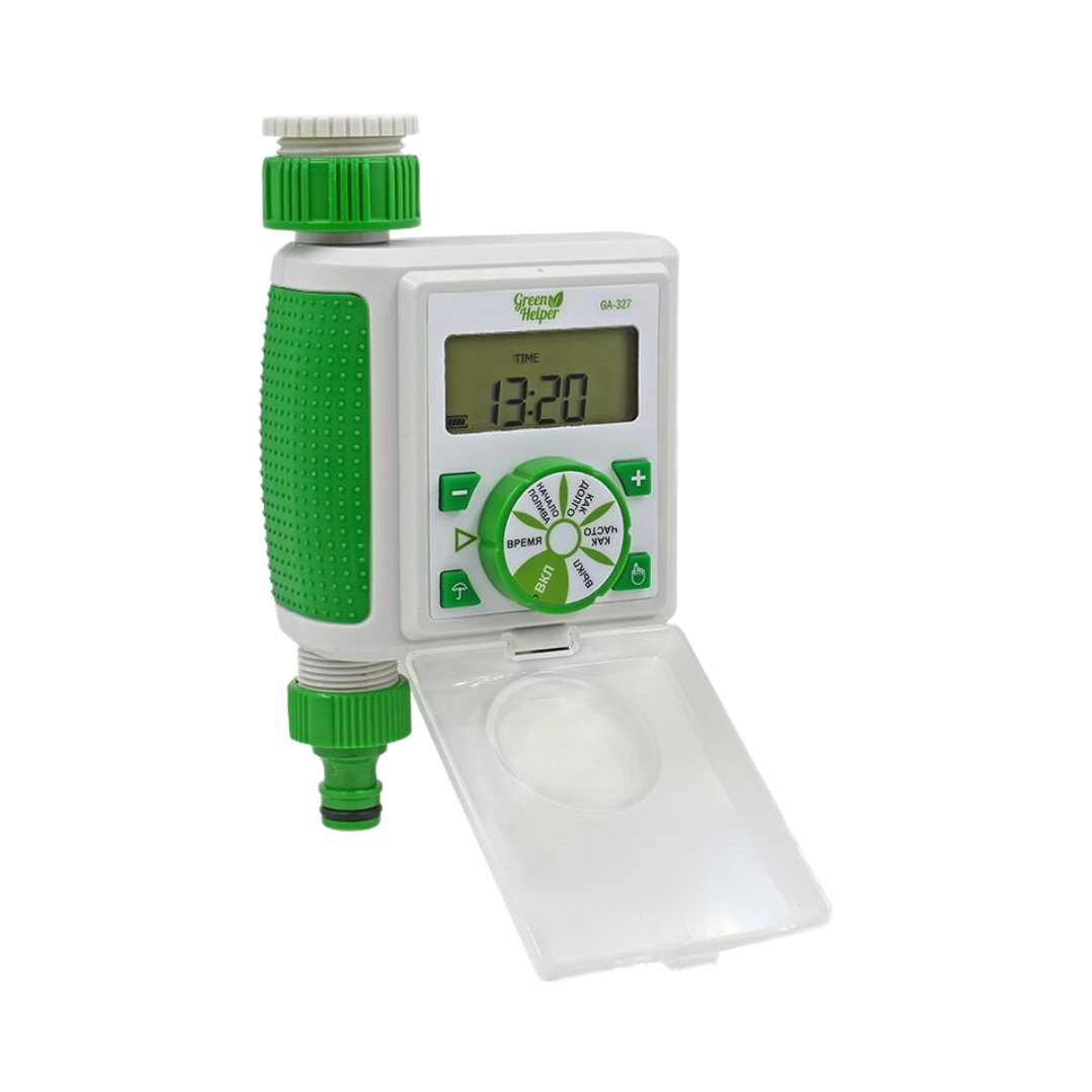 Программируемый электронный таймер GA-327 с соленоидным клапаном, ЖК-дисплеем и возможностью установки длительности полива от 5 секунд.
