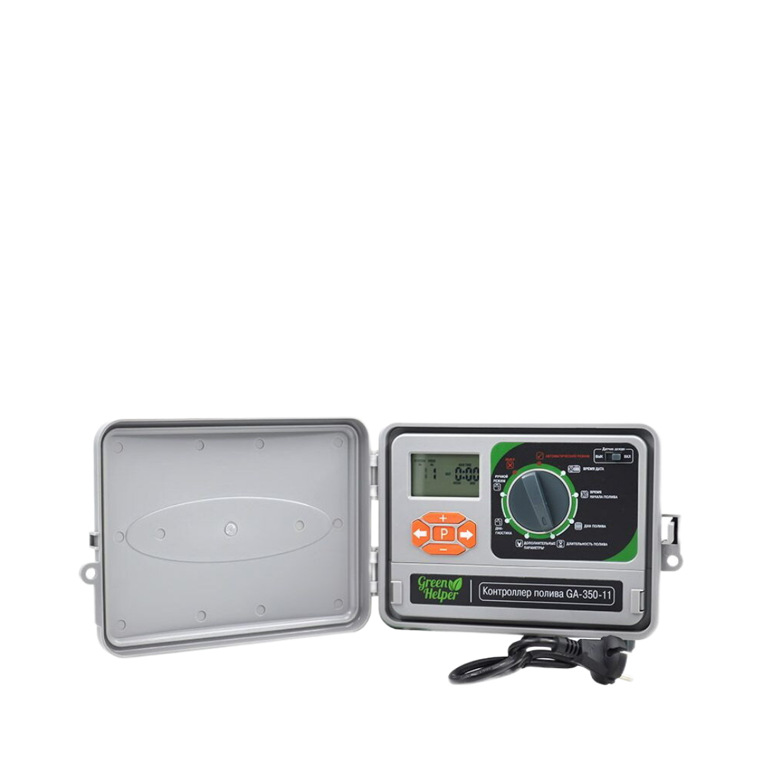 Контроллер полива GА-350-11 предназначен для автоматического управления подачей воды для 10 независимых зон полива через соленоидные клапаны управления.