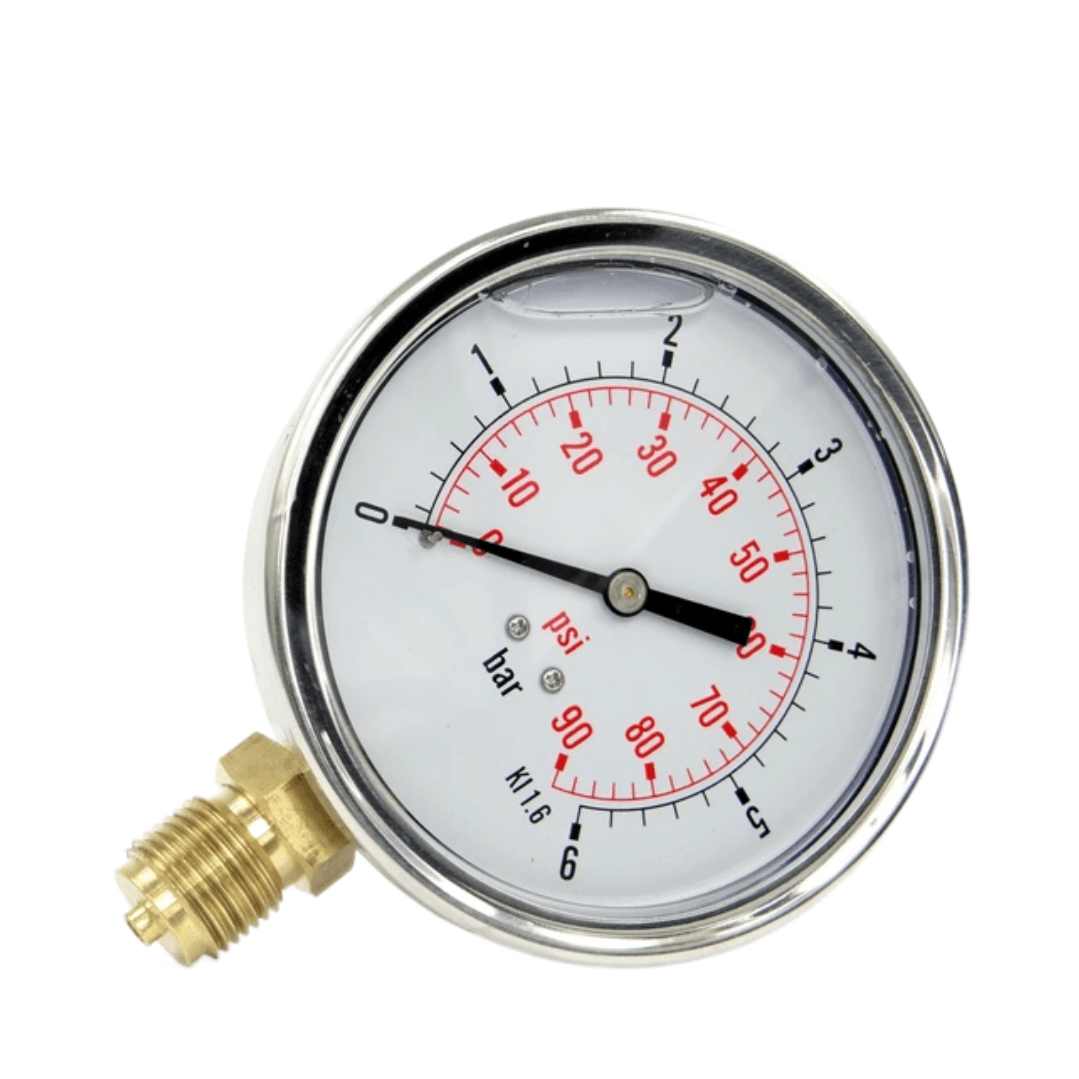 Манометр с глицериновым наполнением служит для измерения давления в трубопроводе, благодаря глицериновому наполнению он точно фиксирует показатели при максимальных вибрациях.